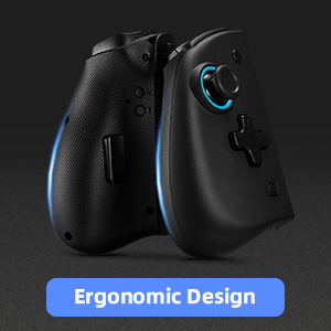 - [Ergonomic&Non-Slip Design] Ergonomic hand–fit design with Lightweight materials make the wired joycon controller game-time comfortable. Bigger buttons and joysticks avoid pressing other buttons by mistake. The back of joycon is designed with a particular anti-skid pattern, which helps increases friction and reduces the unpleasant experience caused by hand sweat.