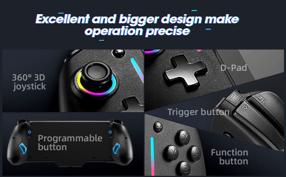 Lightweight and Ergonomic hand fit design wireless switch controller is perfectly matched to the hand shape and comfortable even for long periods of use.