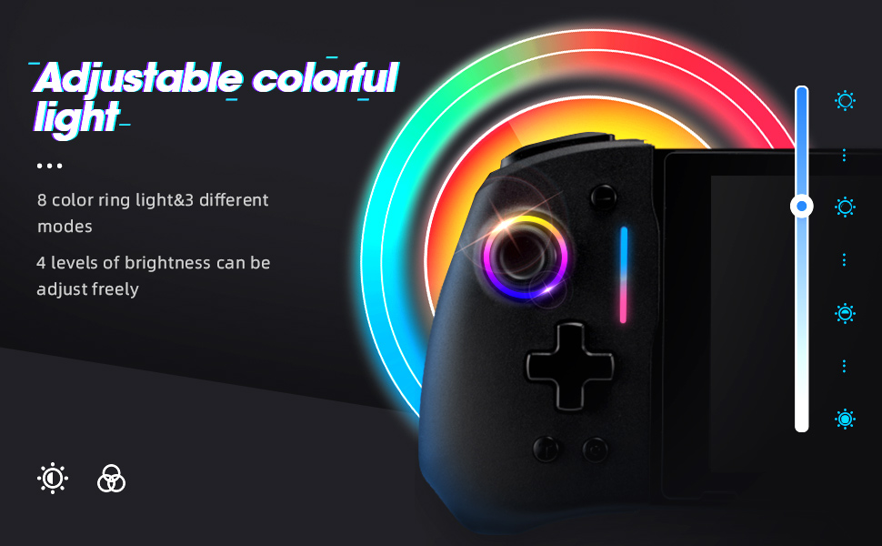 Well-designed Adjustable LED light of 8 different colors! This is the COOLEST wired controller has 7-colors & rainbow LED light, plus different light modes. You can change the style you like with the light button!